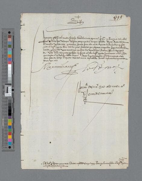 Valladolid, Spain. Signed for the King by Maximilian II, Emperor of Germany as Prince and Maria of Austria, Empress of Germany, as Princess; in the handwriting of, and also signed by Joan de Samano.