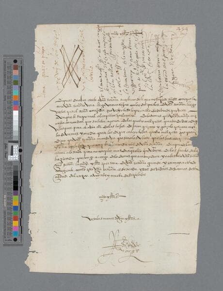 Valladolid, Spain. On verso and following pages: draft report by Pedro de la Gasca, approximately 1550.