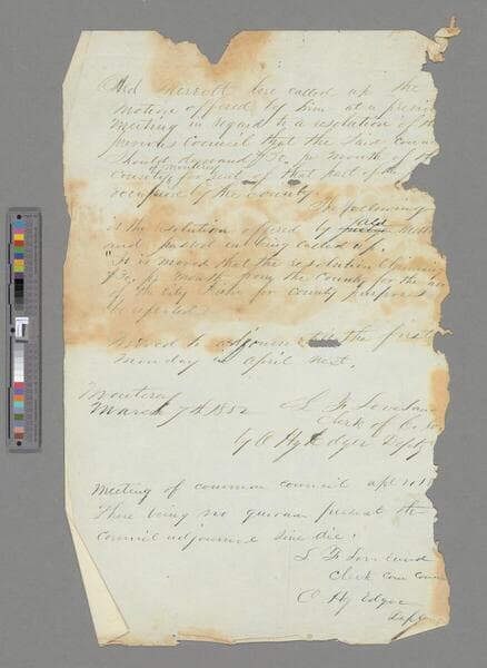 This collection consists of letters and documents related to the government of the municipality of Monterey, California, primarily during the period 1828-1854, with two earlier items for 1785 and 1798, and a later one for 1877. The collection also includes minute books, election results, and records of disbursements of funds and of ordinances passed. Most of the documents are in Spanish until 1846, and in English thereafter. The papers offer a good example of the California municipal system of government operating under an ayuntamiento during the Mexican period, when Monterey was the capital of the province, and under a common council during the early American period. Subject matter includes: Common welfare and the preservation of the public order Health measures, sanitation and hospitals Financial administration: salaries of public officials and employees; assessment of property and taxation, collection of revenues, etc. (over 350 pieces consist of orders to pay, bills, receipts, etc.). Education Elections Administration of justice Repair of streets, bridges, & public buildings Persons represented in the collection include George Allen, W.E.P. Hartnell, José María de Híjar, Philip A. Roach, José Mariano Romero, and David Spence. Some notable items include: Hartnell, William E. P. To Ayuntamiento of Monterey: petition for Mexican citizenship. 1829, Jan. 22 (MR 188) Spence, David. To Ayuntamiento of Monterey: petition for Mexican citizenship. 1829, Jan.22 (MR 364) Monterey (Calif.). Ayuntamiento. Minute books of meetings for the years 1833, 1834, and 1836, which, according to Bancroft, were not believed to be extant. The 1836 minute book contains a copy of the inaugural address of Gov. Mariano Chico, of which there seems to be only one printed copy in the Mercantile Library in San Francisco. (MR 251-253) Hijar, José María de. Letter to David Spence, then Alcalde, requesting a certificate of good character as demonstrated during the four months he resided at Monterey, and asking to state if Spence ever considered that he entertained revolutionary ideas. 1835, Apr. 12 (MR 191) Romero, José Mariano. Letter from the teacher of the normal school at Monterey to the Ayuntamiento, protesting the unjust criticism of his teaching levelled at him by parents and civic authorities. 1835, Nov. 14 (MR 347) Allen, George. Accounts of receipts and disbursements of the municipal funds. 1835 - 1837 (MR 41-45) Tally list of votes, signed ballots cast, and list of delegates elected at Monterey to the Consejo General, scheduled to meet at Santa Barbara on June 15, 1846. 1846, May 26 - 30. (61 pieces) (MR 13) Several documents and bills concerning the building and repair of Colton Hall, California's Constitution Hall. 1847 - 1850 (MR 29, 102, 226, 336, 400) Roach, Philip A. To Common Council of Monterey. Letters from the Mayor containing his recommendations to the council regarding the need for defining the boundaries of the newly constituted city of Monterey, the sale of vacant lands, efforts to be made to have Monterey designated as the capital of California, need for building a wharf, etc. 1850, April 10 and 27. (MR 330) Monterey (Calif.). Residents. Petition addressed to the Common Council requesting that an appropiation be made to defray the expenses of suitably celebrating the 4th of July. Document containing 23 signatures, dated June 6, 1850. (MR 282)