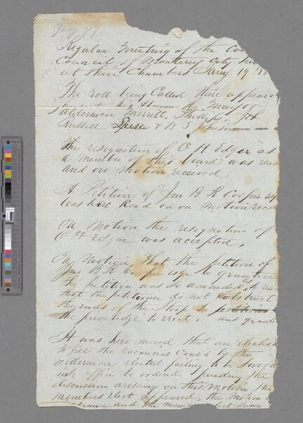 The collection consists of letters and documents related to the government of the municipality of Monterey, primarily during the period 1828-54. The collection also includes minute books, election results, and records of disbursements of funds and of ordinances passed. Most of the documents are in Spanish until 1846, and in English thereafter.