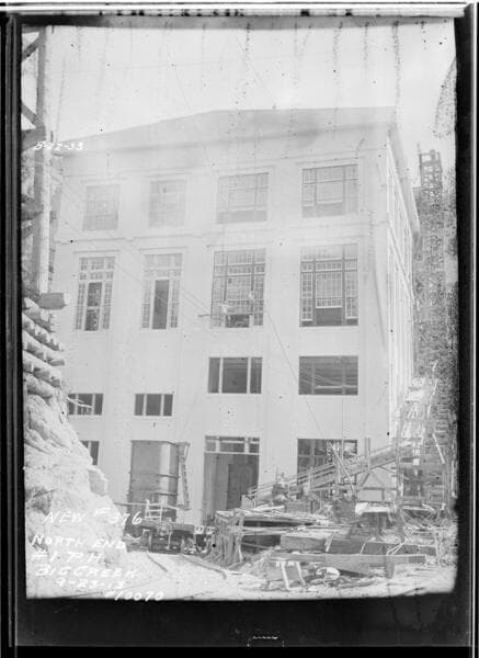 Big Creek - Powerhouse #2 - Taken during construction, the framing stages, from hillside West of Powerhouse (before fire).