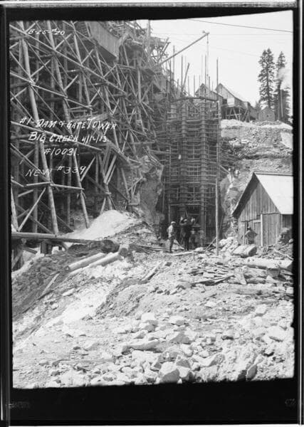 Big Creek - Face of Dam #1 at Huntington Lake - showing construction trestle.