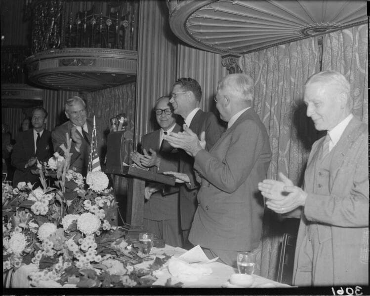 Frequency Change, Dinner at Biltmore - (l to r) Johnson, S. W. Scarfe, L. H. Reynolds, Fred Garrison, Keith Chamberlin.