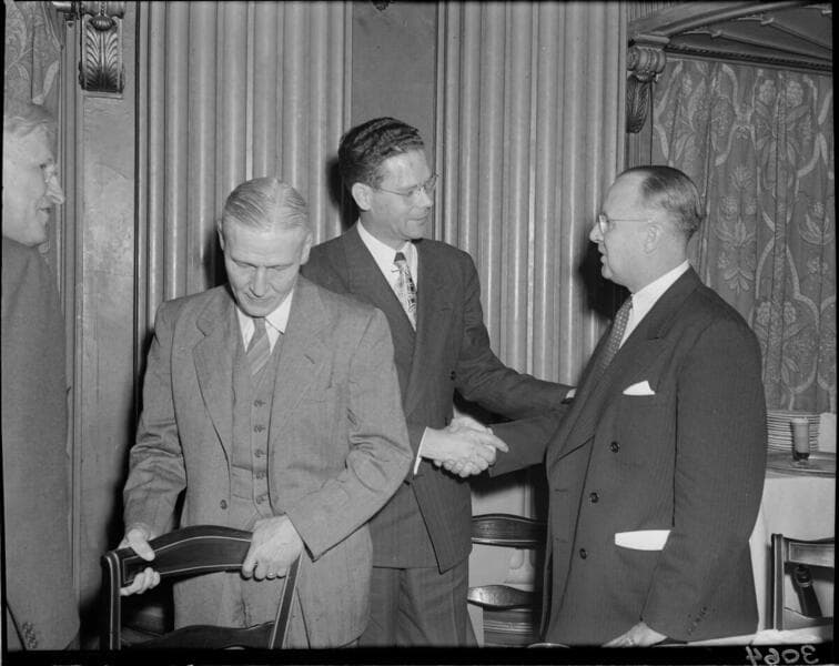 Frequency Change, Dinner at Biltmore - (l to r) Johnson, S. W. Scarfe, L. H. Reynolds, Fred Garrison, Keith Chamberlin.
