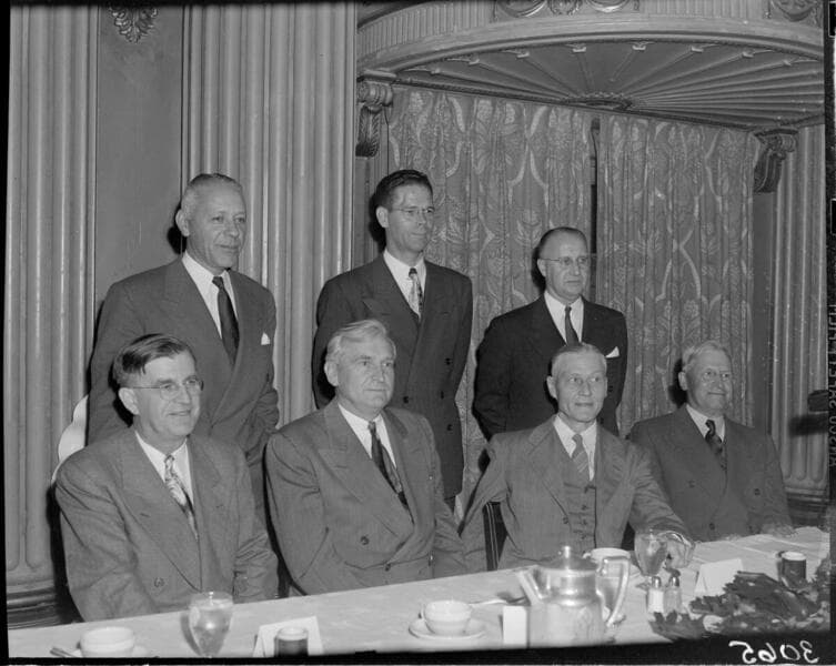 Frequency Change, Dinner at Biltmore - (l to r) Johnson, S. W. Scarfe, L. H. Reynolds, Fred Garrison, Keith Chamberlin.