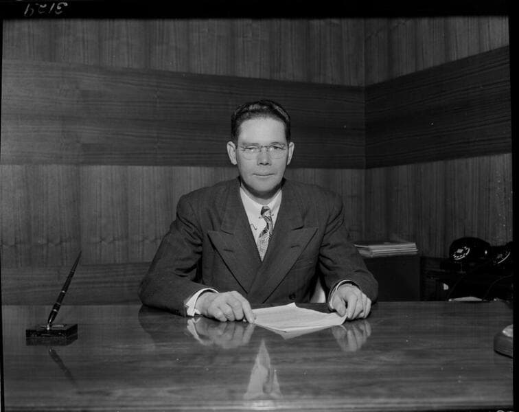 Frequency Change, Dinner at Biltmore - Wayne Johnson speaking, turns page.