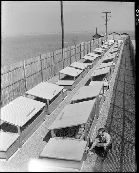 Agriculture, poultry - Pollard Poultry Ranch, Santa Ana - breeding pens.