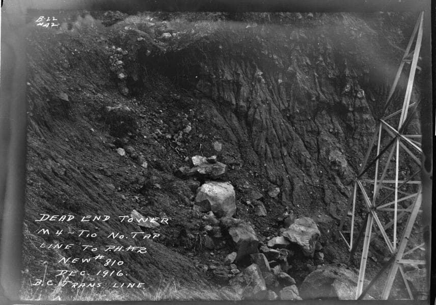 Big Creek T/L. - Base of Dead End tower - Mile 4 Tower 10, South tap line to Powerhouse #2.
