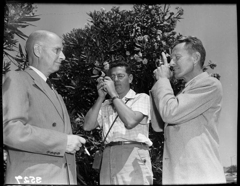 Personalities - Hobbies, Meypes, Gaven, Alwer (record is barely readable). 2 men taking photos of another man
