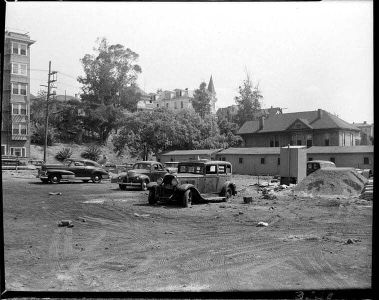 A1.3 - Auto Accidents - Accident in Altadena - wrecked car. [Ford, 2-door sedan]