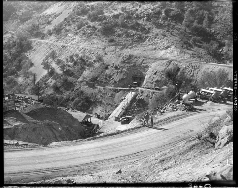 Big Creek 4 construction work: looking across bridge toward tunnel