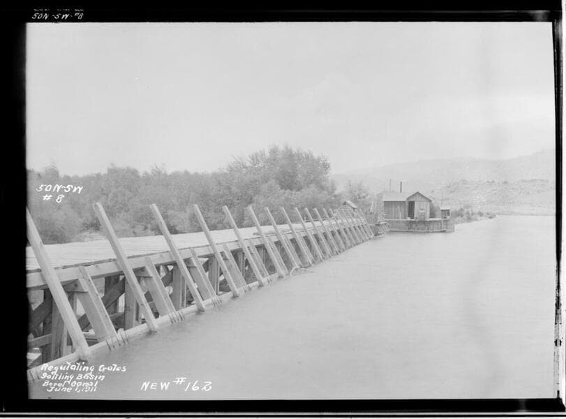 Rear of Borel canal intake showing regulating gates for settling basin.