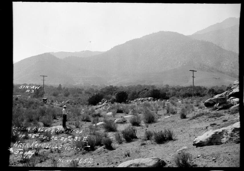 Borel - View SW across E1/2, SE1/4 of Sec. 22, T.25 S., R.33 E., M.D.M. near Kernville. Used in connection with appraisal by Adams, Morgan & Sohier. See letter to Mr. A. N. Kemp 11/10/1915