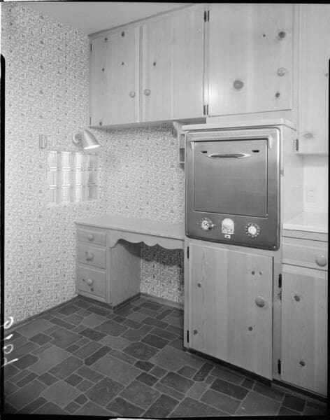 H2.3 - Home Kitchen - Dr. & Mrs. Harwood's Electric Kitchen - Mrs. Harwood opening oven.