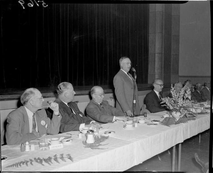 Large banquet - for millionth meter - head table with honored guests.