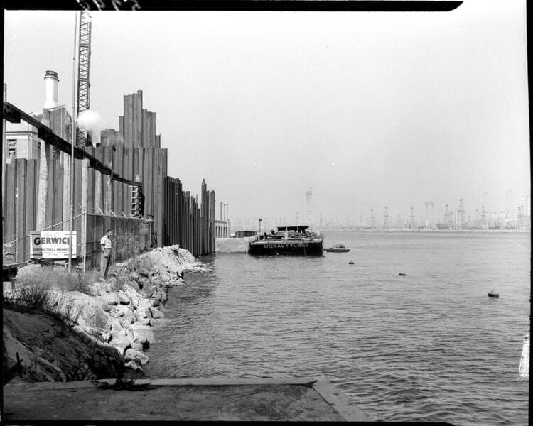 Sea wall construction near cable crossing at Long Beach Harbor.