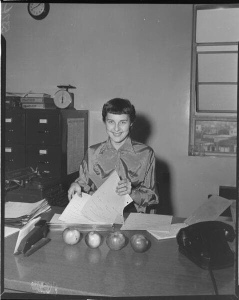Lady receiving and tabulating Personnel Survey forms.