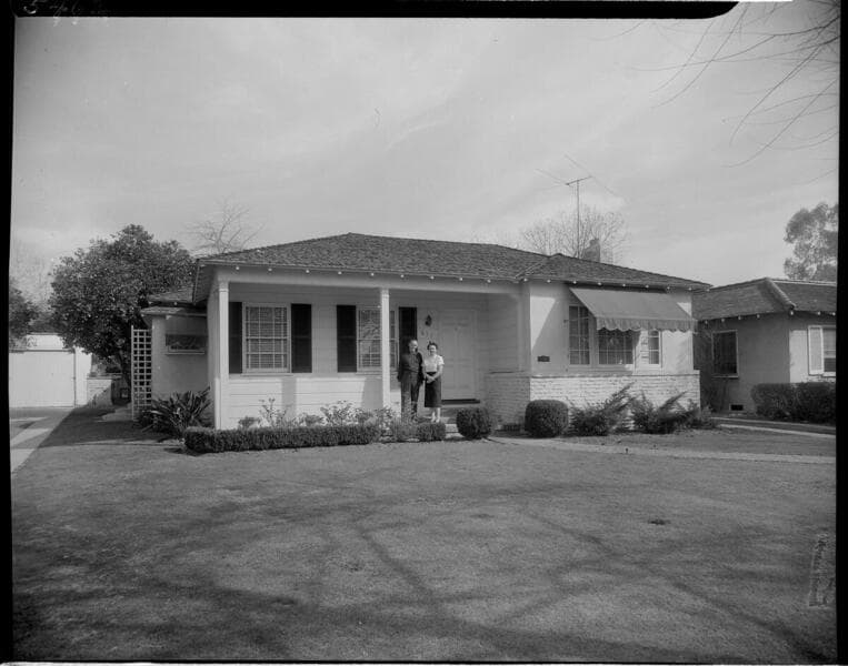 Man or owner standing in front of fast food restaurant "Minute Man Snacks"