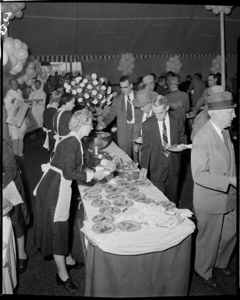 Restaurant Buffet Dining room with food laid out - [with 3 variants]