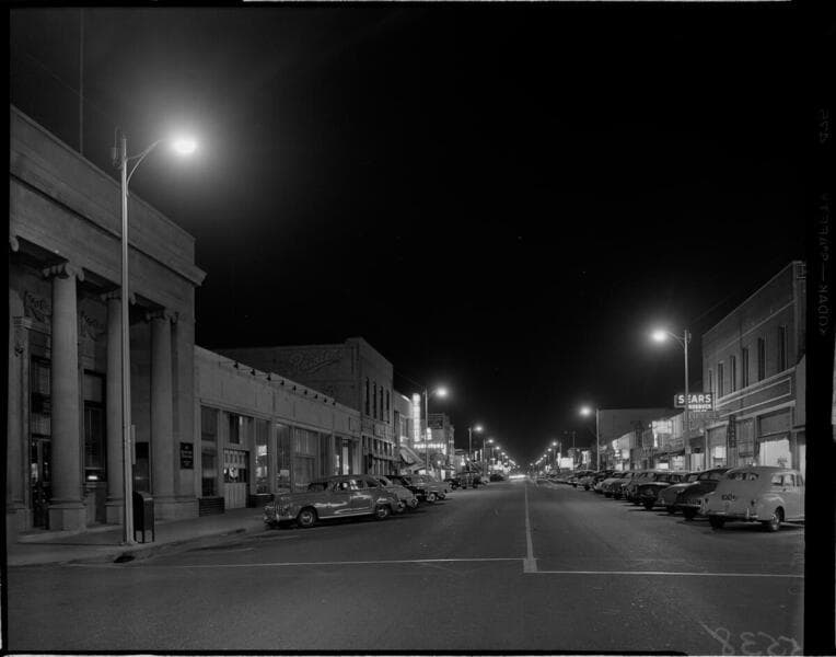 Business street in Santa Paula at night