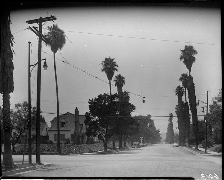 Street lighting in a residential area, Laurel St..