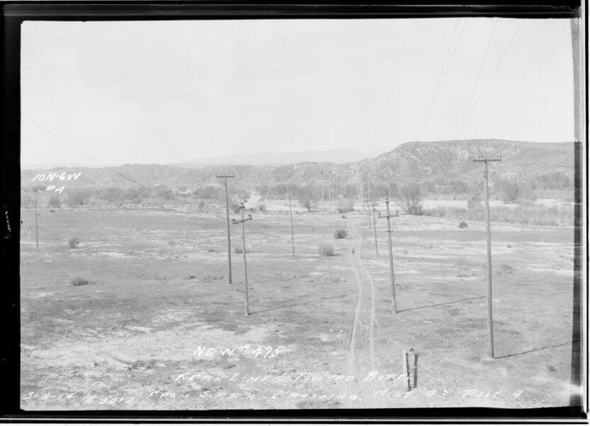 Transmission Lines - Borel to San Fernando (Kern lines) - Pole Lines - Taken from a point near Mile 93 Pole 9 at S.P.R.R. crossing looking Southerly.