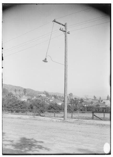 L1.2 - Lighting, streets - Street lighting post - [Westlake and Pico Street in Los Angeles, - showing a residence in the background.]