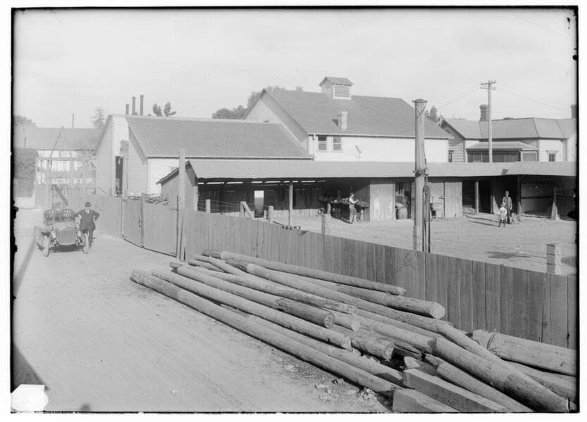 Miscellaneous Facilities - Los Angeles - The E.D.S. Stable entrance [showing a residence in the background].