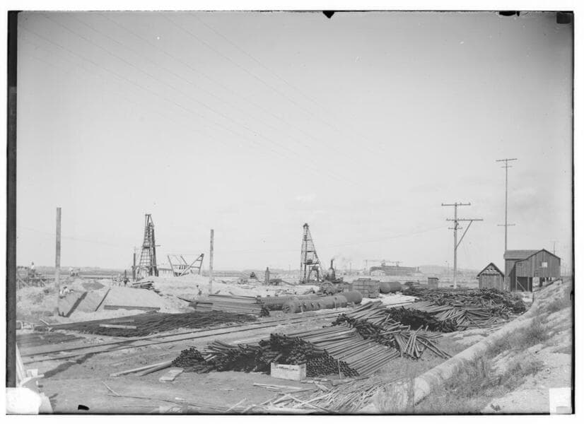 Long Beach Steam Station, Plant #1 - Boilers and tubes on ground.