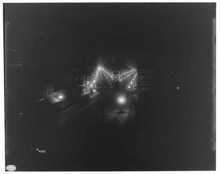 L1.2 - Lighting, streets - Night Photo, junction of Main and Spring Streets.