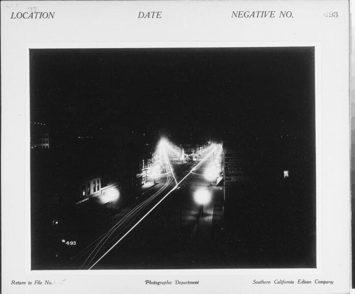 L1.2 - Lighting, streets - A night photo taken near junction of Fifth & Main Streets in Los Angeles.