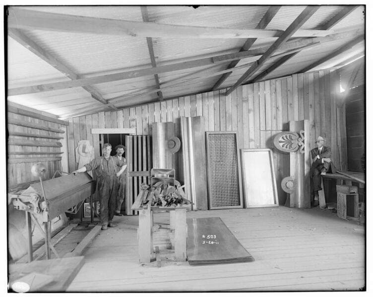 Long Beach Steam Station, Plant #1 - A construction crew working on bricking up the boilers at the Long Beach Steam Plant.