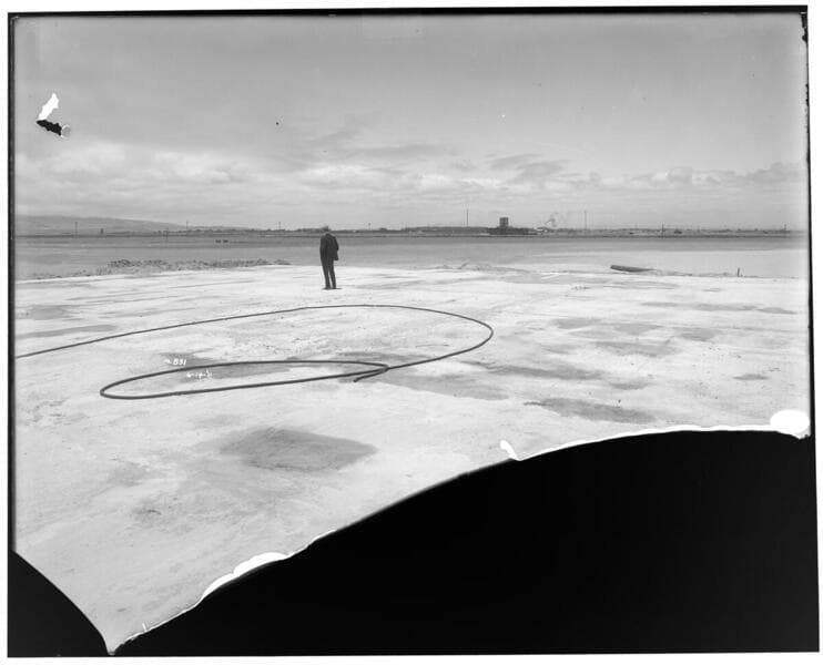 Long Beach Steam Station, Plant #1 - View from top of Oil Storage Tank - Property flooded from filling-in operations with Dredger.
