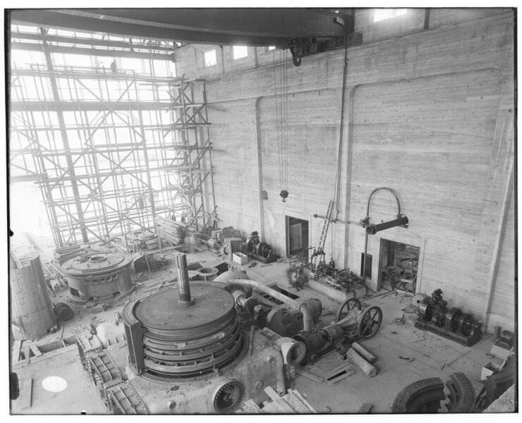 Long Beach Steam Station, Plant #1 - Miscellaneous equipment being erected in Generator Room.