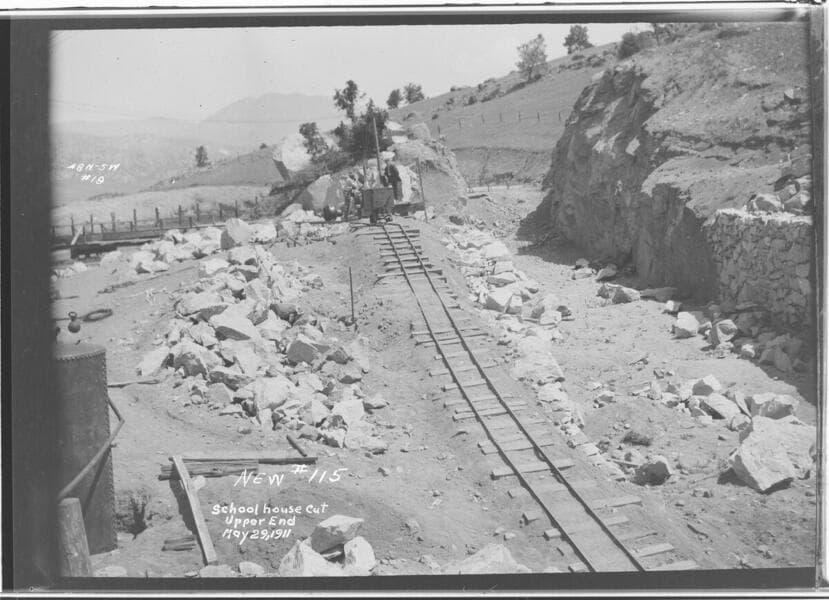 Borel - Canal at lower end of School House Cut. Construction photo showing excavation partially complete.