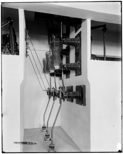 Long Beach Steam Station, Plant #1 - Detail of 60kV Choke Coils (Lightning Arresters).