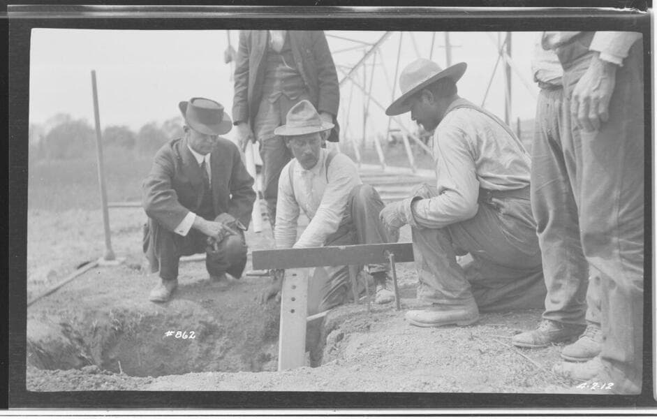 Long Beach-Lighthipe-Laguna Bell Transmission Line - Men with horse teams working on the Long Beach Transmission Line.