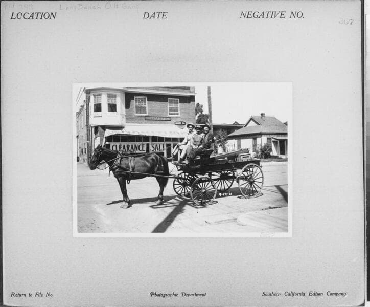 P1.1 - Group Portraits - The Long Beach E.D.S. (Electric Distribution System) Gang leaning against a wagon.