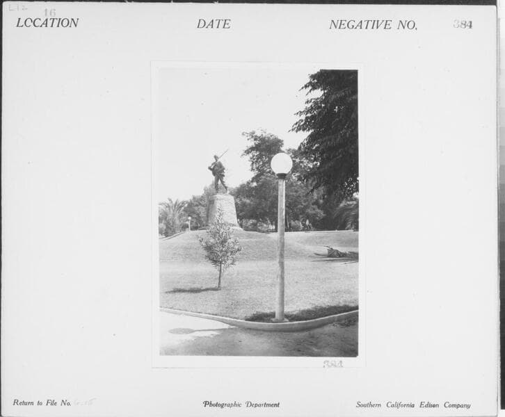 L1.2 - Lighting, streets - Street lighting post - Private Park, Los Angeles. [There is a large Craftsman house in the background.]