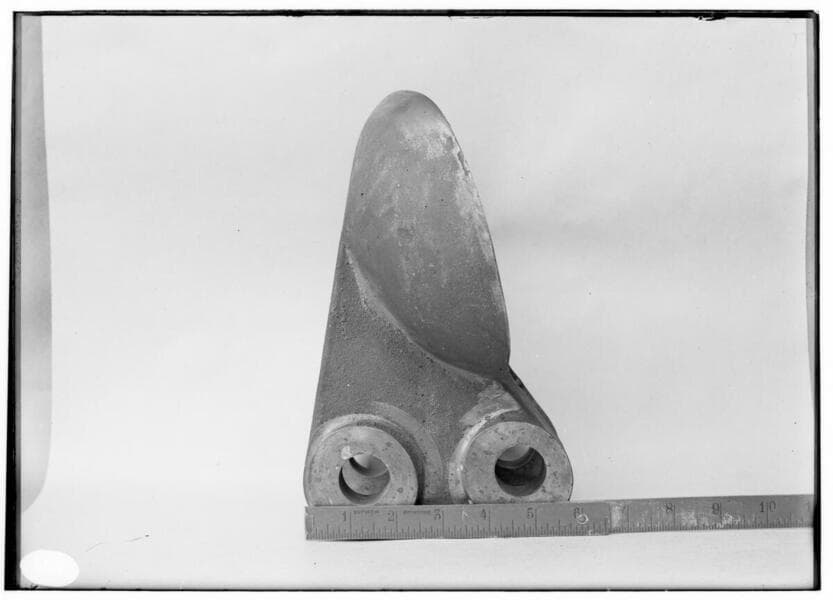 Hydro Generation Equipment - The bottom view of a Pelton waterwheel bucket.