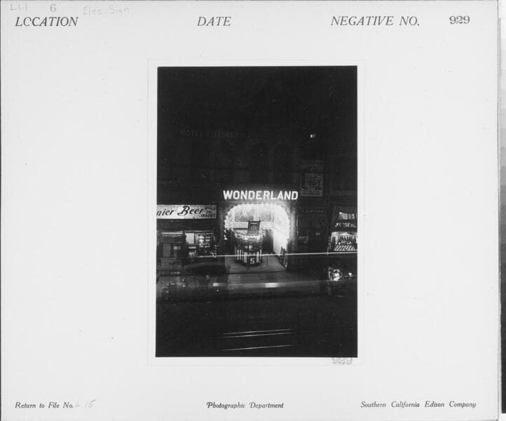 L1.1 - Lighting, misc. - A night photo of an electric sign at "Airdome" dance hall.