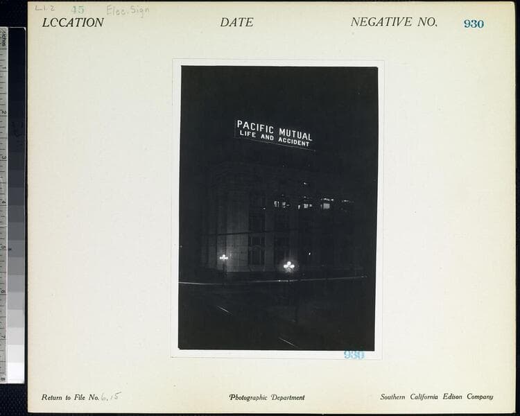 L1.2 - Lighting, streets - A night photo on an electric sign of an orange tree of the Campbell Electric Sign Company.