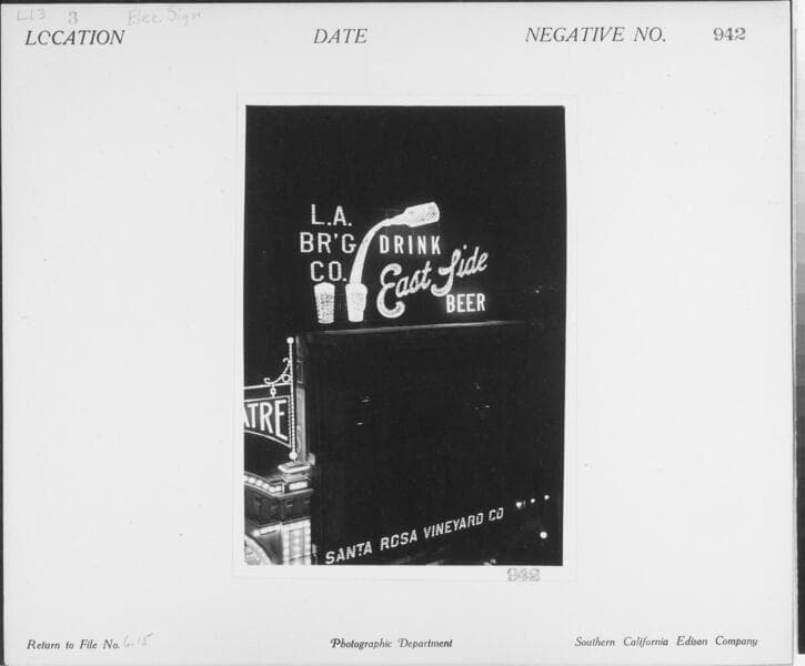 L1.3 - Lighting, stores - A night photo of the "Electric Shop" sign at Third and Main.