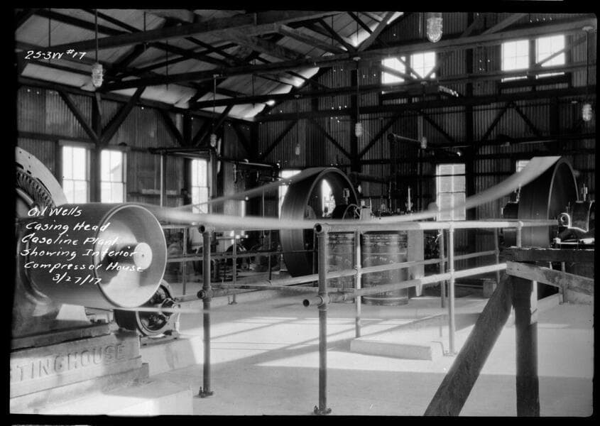 Oil Wells - Casing Head Gasoline Plant showing compressor house.