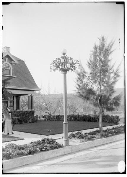 L1.2 - Lighting, streets - A street lighting post on Orange Grove Avenue in Pasadena.
