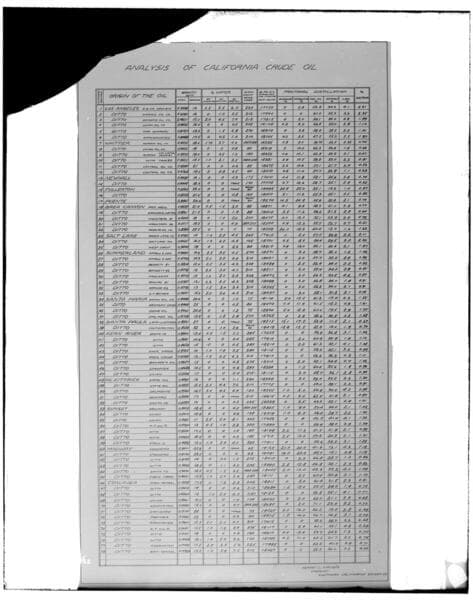 C1.1 - Charts miscellaneous - A chart showing an analysis of the fractional distillation of various California crude oils and crude from several other states.