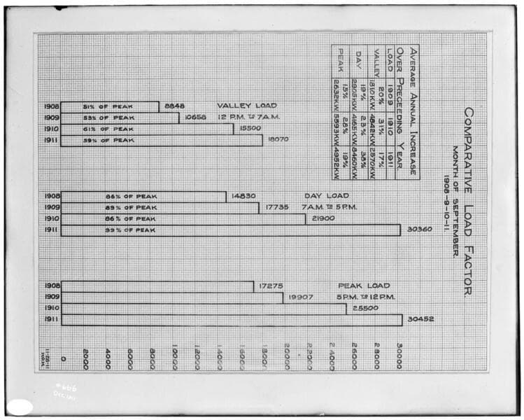 C1.1 - Charts miscellaneous - A comparative load factor chart for the months of August 1908, 1909, 1910, and 1911.