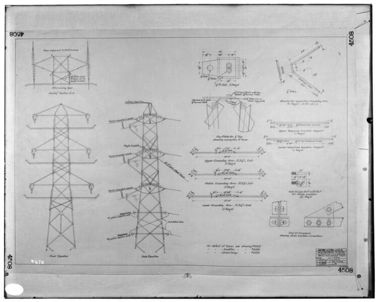 C1.1 - Charts miscellaneous - Drawing #4432 of transmission towers.