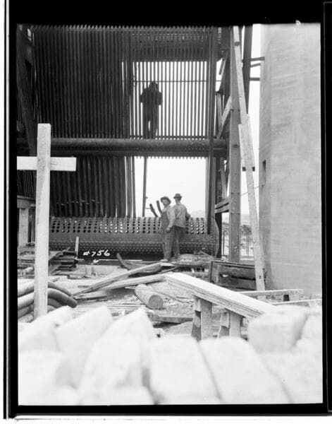 Long Beach Steam Station, Plant #1 - A construction crew working on bricking up the boilers at the Long Beach Steam Plant.