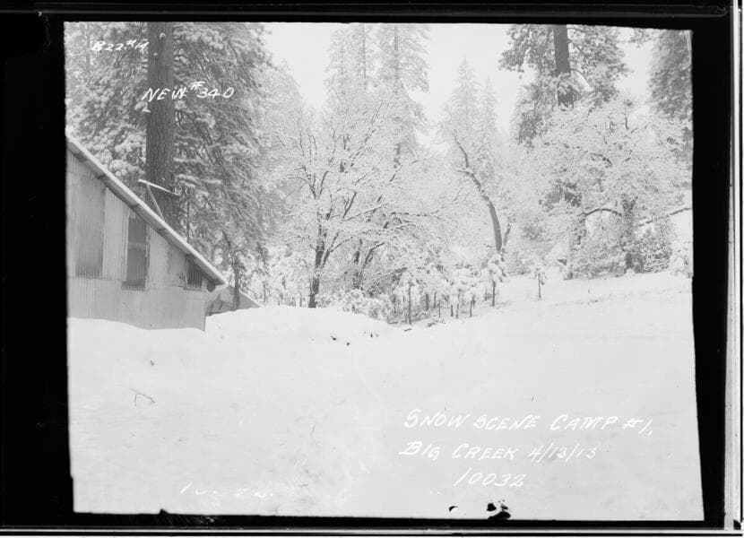 Big Creek Scenery and Huntington Lake Lodge. Photographs around Big Creek, Powerhouse No. 1, Stevenson Creek Camp, Basin Laundry near Camp 3, Pitman Creek, Big Creek Hotel, Indian Hut, Dawn Lumber Mill and Yard, winter scenes, Nellie Lake frozen, Kaiser Crest, Home Camp Creek, Big Falls on Pitman Creek, corral at Cattleman's Camp, Rancheria Creek, Huntington Lake Lodge and Cottages, boating.